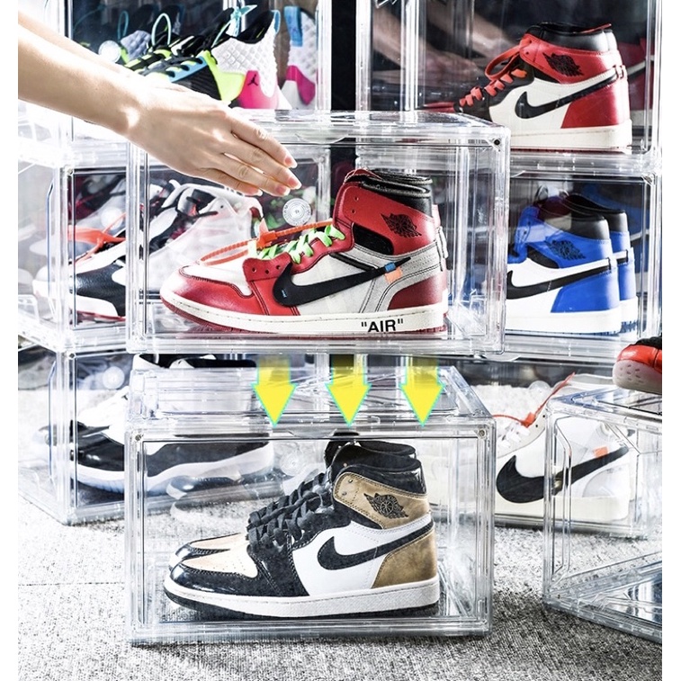台灣現貨 ?? 免運 附發票 透明鞋盒 磁吸 側開 加厚款 硬盒 球鞋收納 穩固疊加 鞋盒