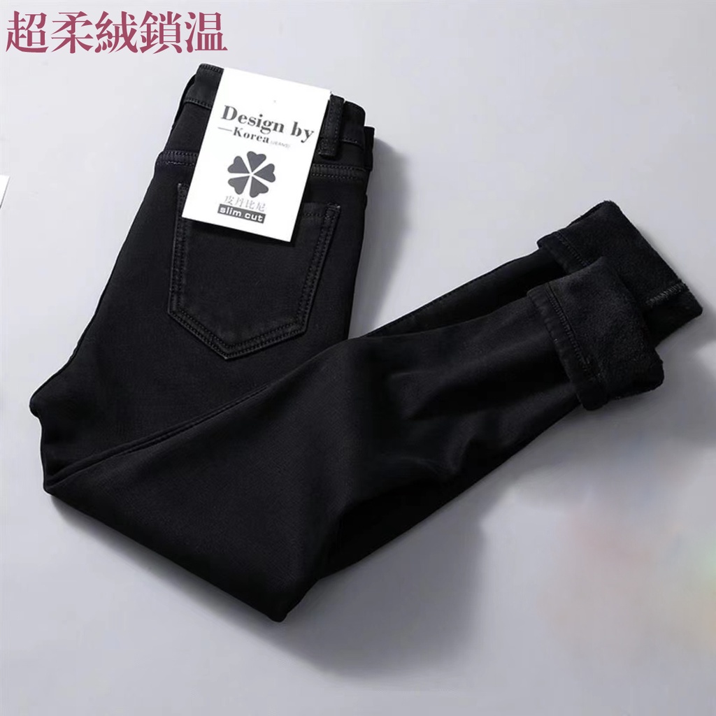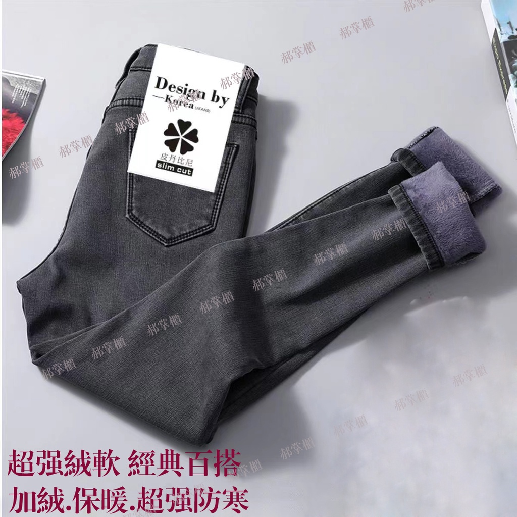 現貨 韓版牛仔長褲 【加絨/單褲】日系女牛仔褲 加絨牛仔褲 刷毛褲 防寒褲 大呎碼牛仔長褲 刷毛牛仔褲 彈力牛仔褲