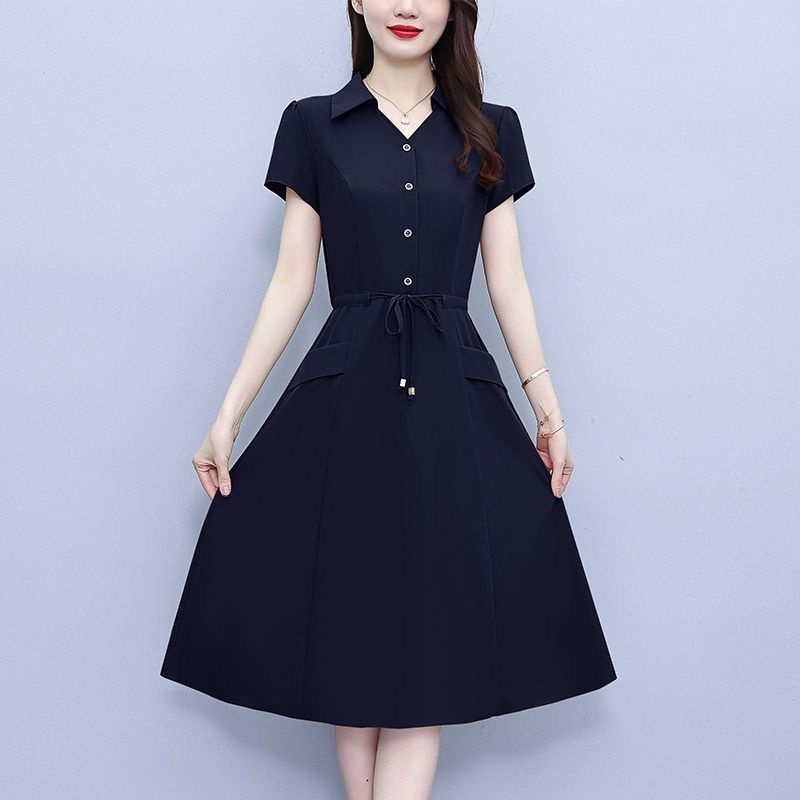 2023 Summer New Style Dress Mom Dress Large Size High-End Fashion Middle-Aged Elderly Women's Clothing with Pocket A-
