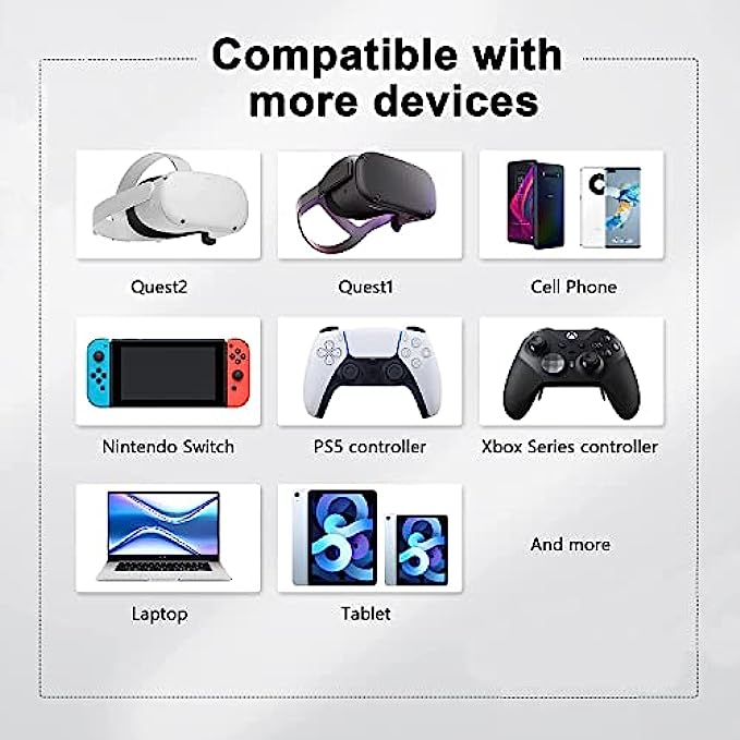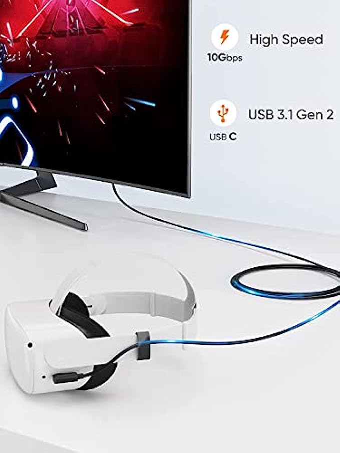 • 【Latest Upgrade 2 in 1 Link Cable for Oculus Quest 2】link cable for Oculus has great advantages compared with the traditional single interface link cable on the market. Our 2-in-1 link cable provides two device interfaces, supporting USB 3.2 GEN 1 Type A to C and C to C, you can use the cable connecting Quest 2/1 to a gaming PC to play a wide range of Oculus Rift apps and games, suitable for various computers and other device interfaces, such as mobile phones, tablets, printers, etc.