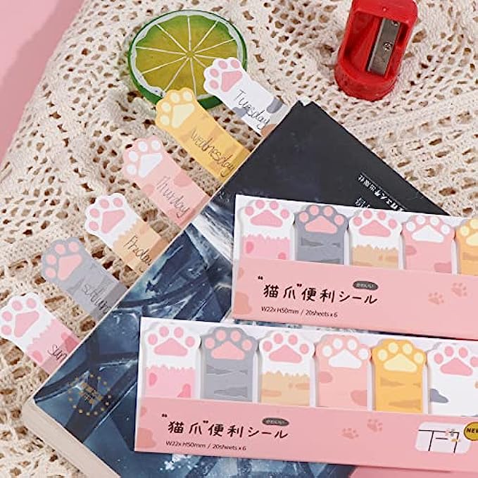 240Pcs Cartoon Animal Notes Cat Paw Memo Self-Adhesive Tabs Notes Page Markers Flags Index for Cat Lovers, Cute Office Supplies, Kawaii School Supplies