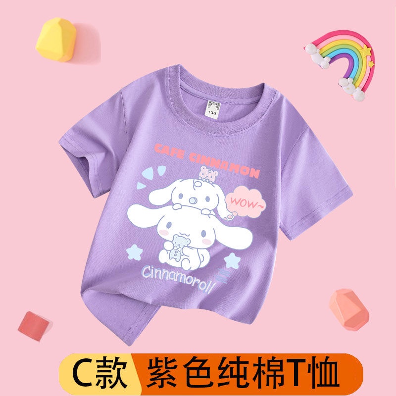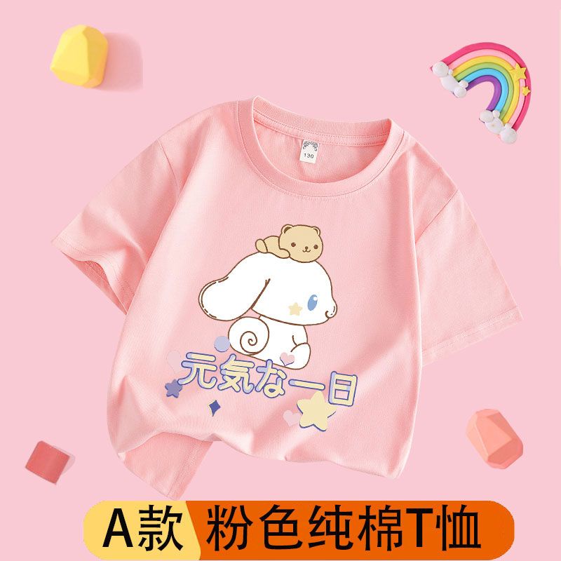 [3-piece set] 100% Cotton Girls' Shirt Kids Short Sleeve Girls' Cinnamoroll Shirt Clothes Children's Big Ear Dog Shirt Short Sleeve T-shirt Top