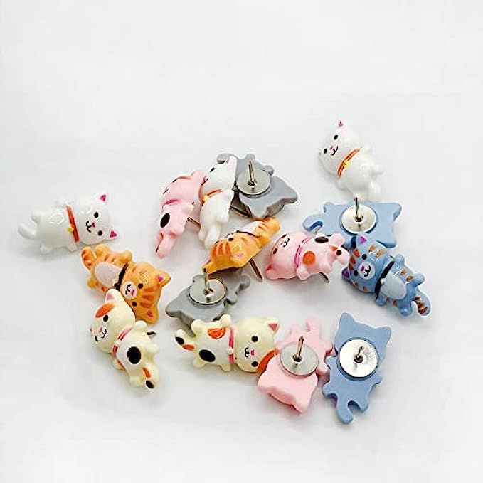 30 pcs Cute Cat Creative Push Pin Cute Decorative Thumbtacks Photo Memo Note Drawing Multi-Functional Pushpin Home Office Teacher Personal Organization Supplies