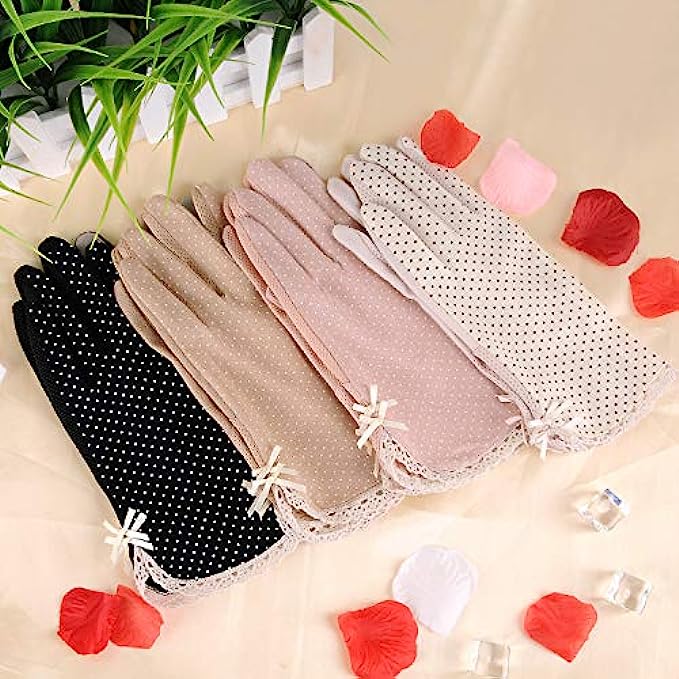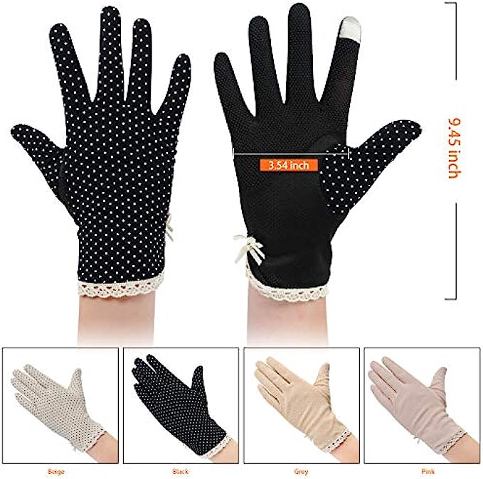 4 Pairs Summer Women Dots Sun Uv Protection Gloves Cotton Lace Anti-skid Driving Gloves