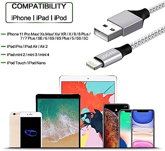 ➤Perfect Compatibility: iPhone Charger Cable for iPhone iphone 12Pro Max/12Pro/12/xr /iphone xs / xs max /iphone x/ iphone 10/ iphone 11/iphone11 pro/iphone 11 pro Max, iPhone 8 / 8 Plus, iPhone 7 / 7 Plus, iPhone 6s Plus / 6s / 6 Plus / 6, iPhone 5s / 5c / 5 / SE, iPad / iPod and more.