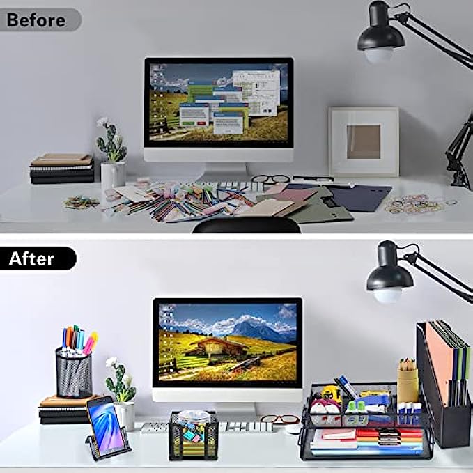 【Use Everywhere】- Enhances your workstation and great for dressing table, kitchen counter, studying room and washbasin. Fit lots of things like desk organization, cosmetic, school supplies, soap, fragrance, spoon and fork etc. The desk supplies is also a good choice for New Year's gift, Birthdays, Children's Day or other celebrations for family, friends and relatives