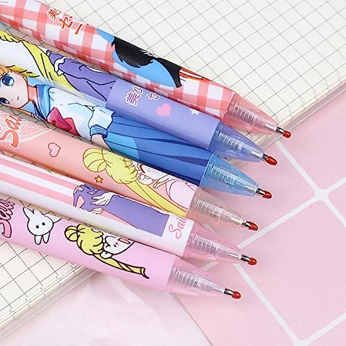 6 Pcs Kawaii Pens Anime Sailor Pen Moon Merchandise Black Ink 0.5mm Ballpoint Pens Office School Supplies for Girls Women Press Gel Pen