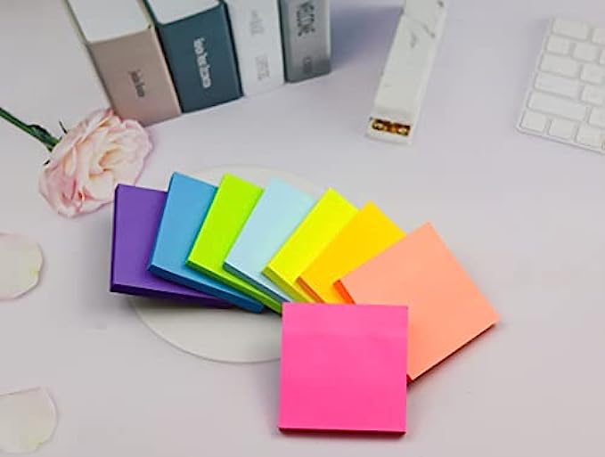 • ✅Super Sticky Notes: Strong adhesive, make sure sticky notes don't fall off, and removes cleanly as well. Sticky note is easy to recycle.