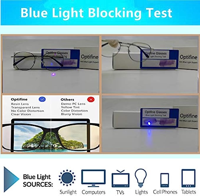 • ? ANTI BLUE LIGHT -- Staring at a computer screen all day can cause headache and nausea, Optifine Glasses will block 97% hurmful blue rays out, to minimize Digital Eye Strain caused by harmful blue light emitted from digital screens