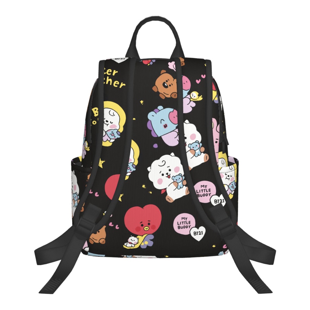 BT21 14.7 Inches Backpacks Cute Book Bag for Students Commuting, Funny Backpack Durable Travel Bags with Multiple Zipper Pockets Design