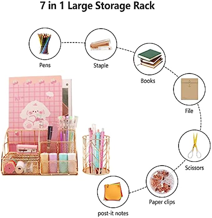♥Versatile Use:One fit all! Your file, letter, pencil, scissor, pen, stapler can all be stored in our mesh desk organizer. Moreover, besides being a stationery holder, the organizer could also become your cosmetic holder. For example, you can put your eyebrow pencil, eyeliner, makeup brushers in the organizer.