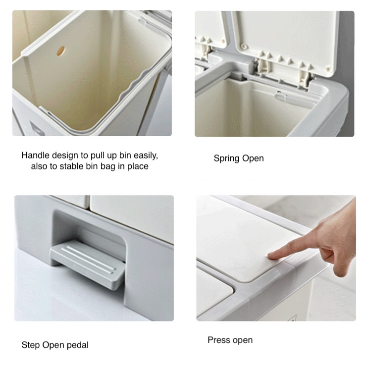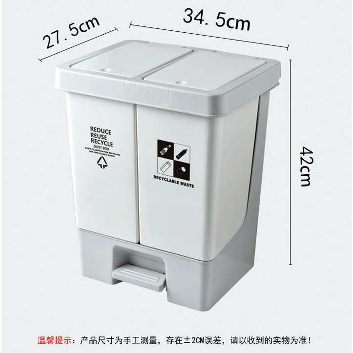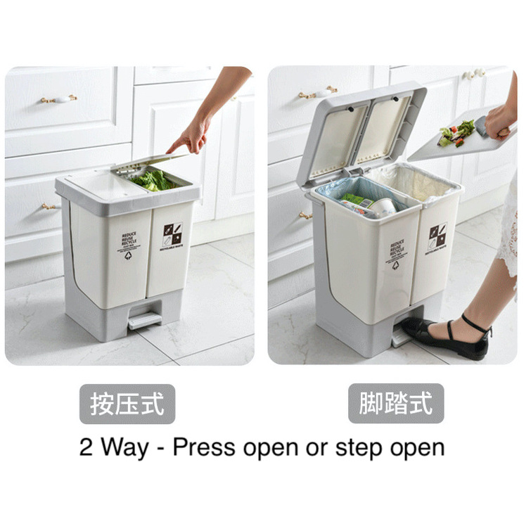 Easyhome.sg 20L Dual Compartment Trash Bin Dustbin Rubbish Double Separate Sorting Bins Wet Dry Garbage Recycling Bin