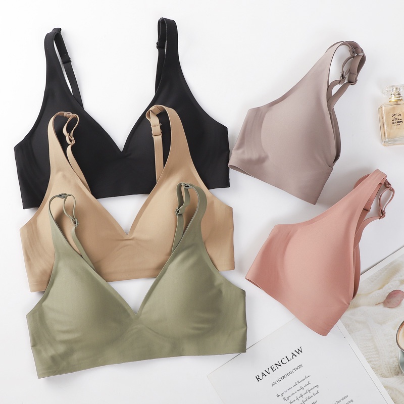FINETOO Japanese SUJI Invisible-button black-technology bra jelly Deep-V seamless adjustment Bra women no-wire underwear