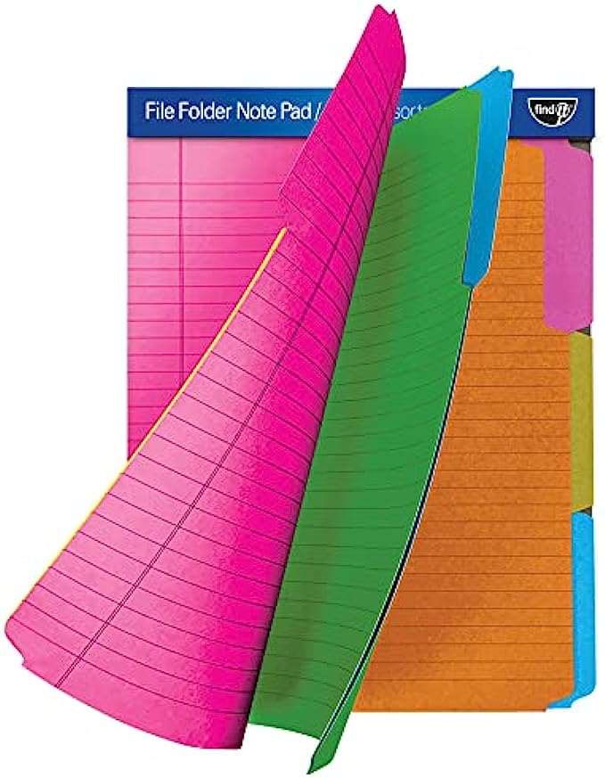 • 12 FOLDERS - Enjoy 12 assorted third-cut file cabinet folders in each pad. The perforated top allows you to simply tear and file your notes easily and efficiently.