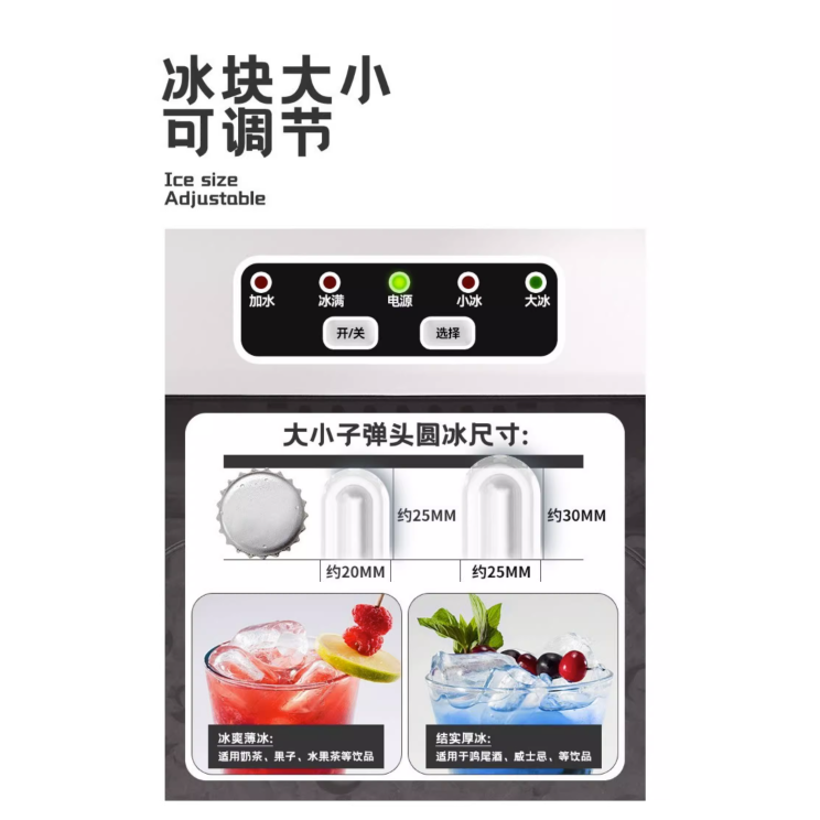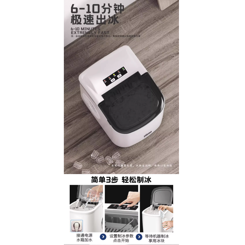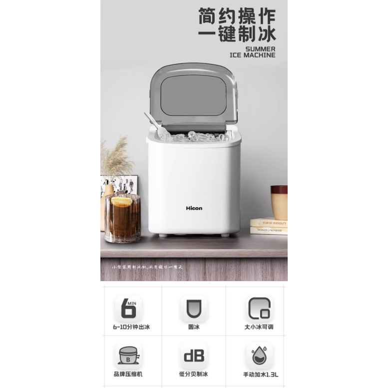Hicon Ice Maker Fully automatic ice cube making machine Small Milk Tea Shop Commercial 15kg Household Mini Ice machine Automatic cleaning Dormitory Round Cube Makinging Machine intelligence Six minute