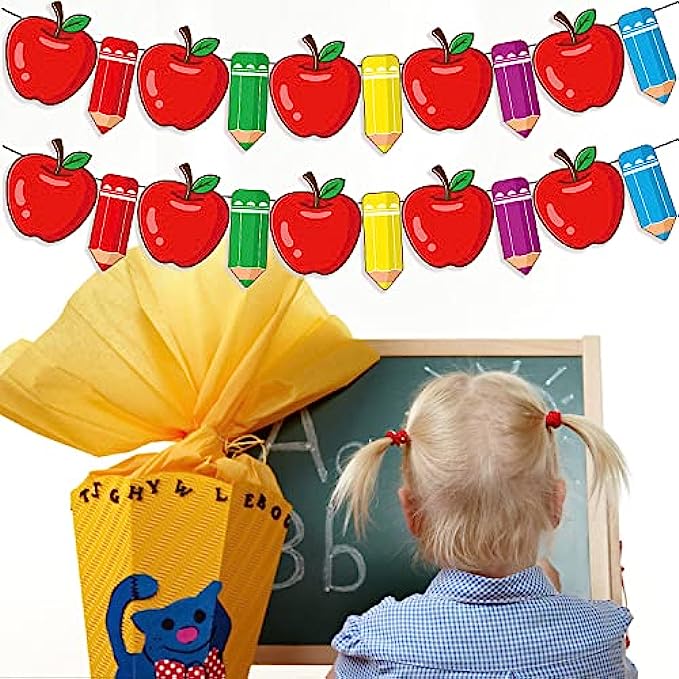 • ?The Pencil and Apple Banner is perfect for students back to school party decorations, first day of school first day of kindergarten party decorations, school classroom welcome back party decor, or classroom, daycare, office, elementary, high middle school, university, college, kindergarten graduation decorations.