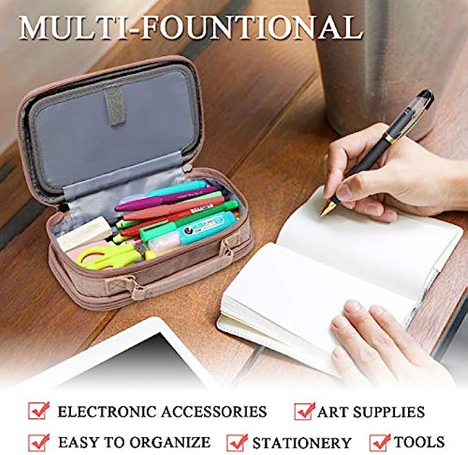 • ✎DURABLE&PRACTIAL:Large wide open pockets for easy storing.Sturdy and smooth SBS zippers allow the pen case easy to open and close.In addition to holding lots of your everyday writing tools, the pencil case keeps them organized.