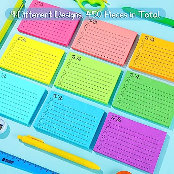 • Package Contains: you will get 9 pads of to do sticky notes in different colors, each pad has 50 pieces, sufficient in quantity and abundant in colors to meet your diverse needs; They add personalization to your themed classroom and office space