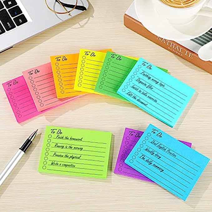 • Simple to Use: sticky note to do list is made of quality paper, with good stickiness, which is sturdy, easy to paste and will not peel off; It is very suitable for pasting on books, folders, glass, displays and file cabinets