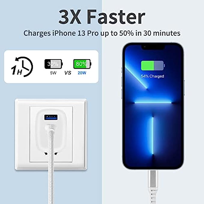 • [Fast Charge for iPhone] USB C wall charger with 20W power delivery output, provide 3A fast charging for iPhone, iPad, Watch, AirPods, charge the iPhone13 Pro Max to 50% in 30 minutes
