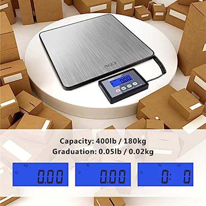 ACCT Postage Scale 400lb, mail scale, Digital Postal Scale with hold /auto-off/tare function, shipping scale for packages/small business/luggage/office, heavy duty scale with batteries & power ada