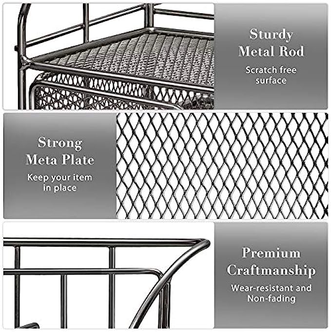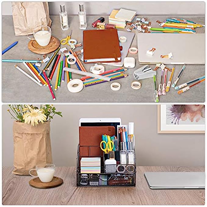 • EASY ACCESS: Mesh design allows you to easily find anything you need. Our desk organizer’s pull-out drawer slides in and out smoothly and effortlessly upon tug. The office desk organizer comes fully assembled; just unbox and go. Having a tidy desk makes you work twice as fast and helps you become more creative throughout the day!