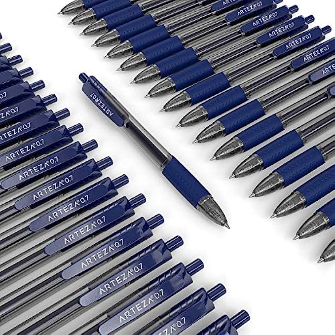• Bulk Set of Retractable Gel Pens: Never be without your favorite pen again with this large set of 50 blue gel pens. Whether you're at school, work, or in the office, you’ll appreciate that these are comfortable to hold, write evenly, and dry fast.