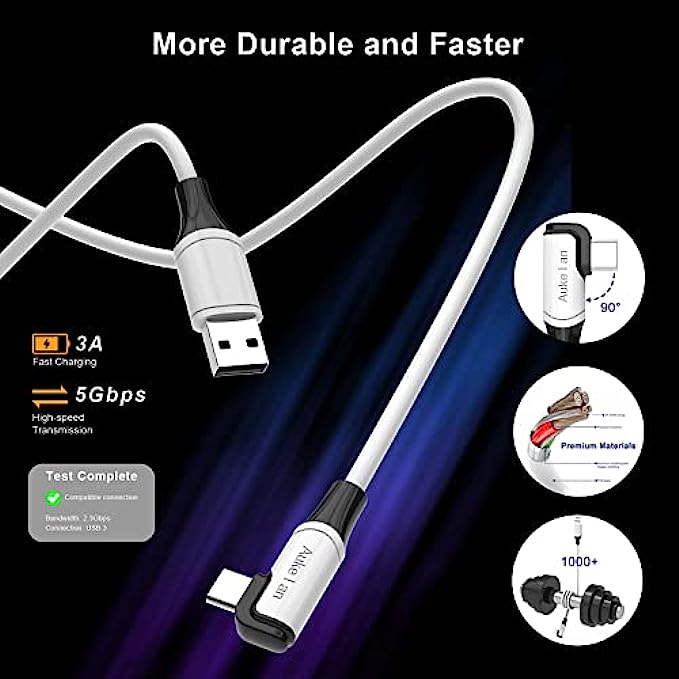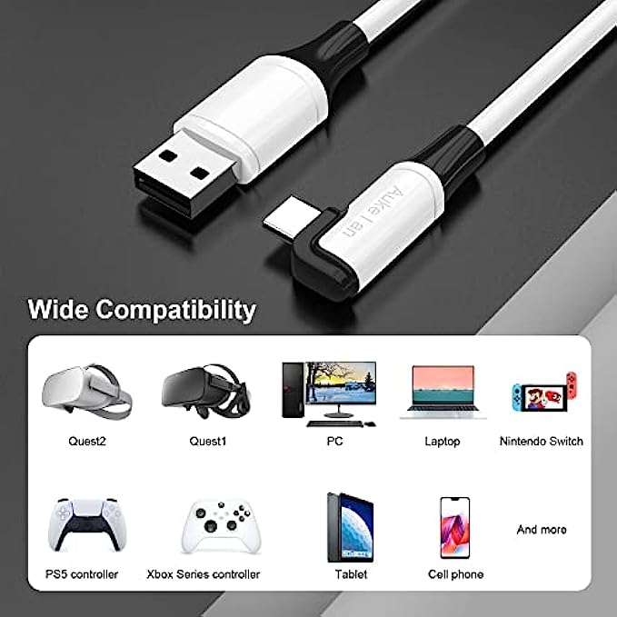 Upgraded Exclusive Right-Angle Design: This right-angle USB C cable features an innovative 90-degree "L" design. Its ergonomic design makes it easier to connect to your Quest, so you don't have to worry about a bad connection or even dropping your Oculus cable, even if you're enthusiastically playing PC games.