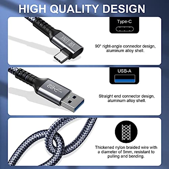 • 【Friendly Design】The USB C-type end buckle is designed with a 90° right angle, which effectively prevents the Oculus quest cable port from breaking during gaming. Easier to plug into VR headset for pc not easily loosened.