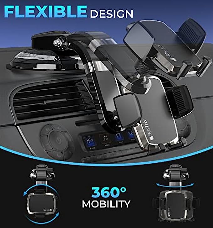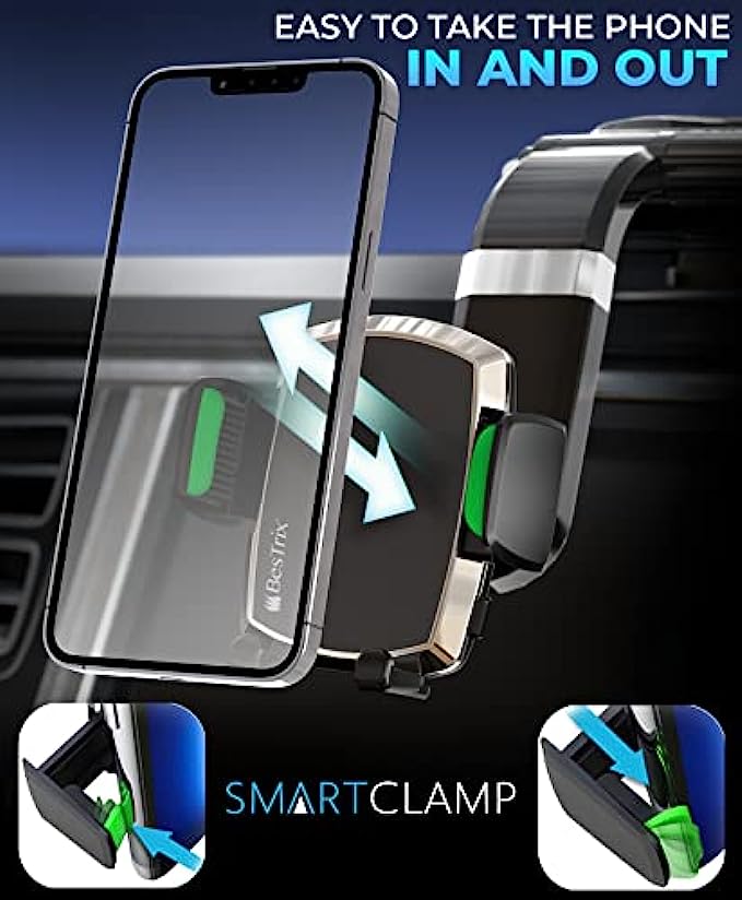 BESTRIX Phone Holder for Car, SmartClamp Car Phone Mount | Dashboard Cell Phone Car Phone Holder Compatible with iPhone 13 12 11 Pro, Xr, Xs, XS MAX,XR,X, Galaxy S20 Note 20 Ultra & All Smartphone