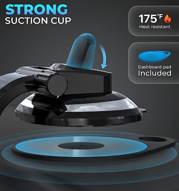 UPGRADED SUCTION CUP - Upgraded super strong stickiness suction cup with the extra dashboard pad fits all dashboards with smooth surfaces, leather/faux dashboards. It is very easy to install with the unique suction cup (Less than a minute!), just make sure to remove all air from underneath before locking the lever.