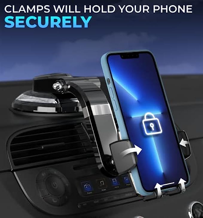 EXCLUSIVE SMARTCLAMP FEATURE, UNIVERSAL COMPATIBILITY- This phone car holder comes with our exclusive SmartClamp phone cradle- an innovative design that enables you to effortlessly put phones in and out of the mount. Compatible with all phone screens, Adjust once for a snug fit & use seamlessly with just one hand- with no awkward buttons to push, no clunky metal plates on your phone or untrustworthy magnet car phone holder mounts.