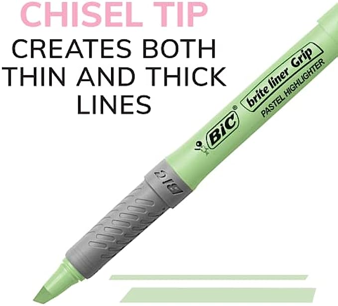 • One 12-count pack of BIC Brite Liner Grip Pastel Highlighters