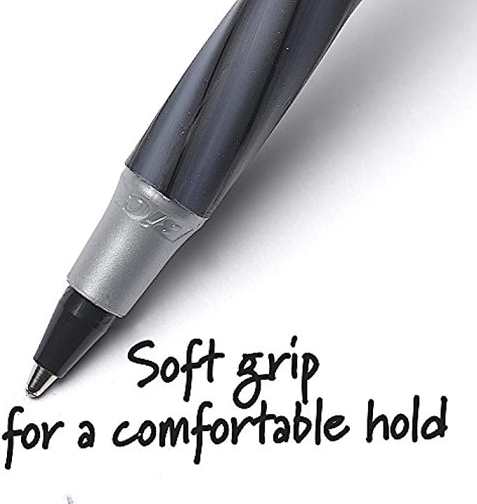 BIC Round Stic Grip Xtra Comfort Ballpoint Pen, Medium Point (1.2mm), Black & Blue, Soft Grip For Added Comfort And Control, 36-Count