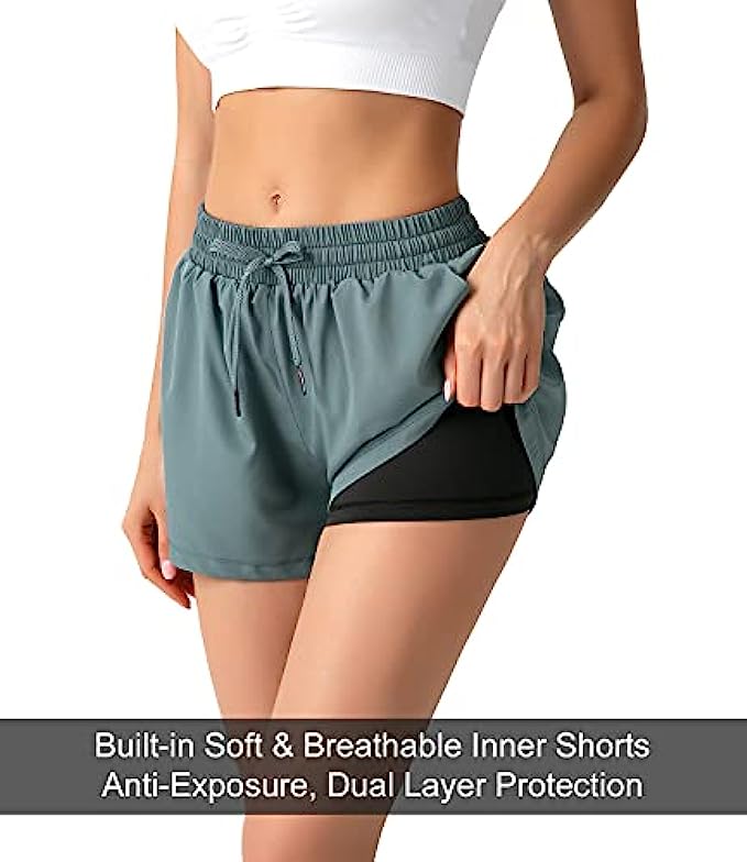 Cholewy Athletic Shorts for Women High Waisted Running Shorts Quick Dry Workout Hiking Shorts with Pockets 2"