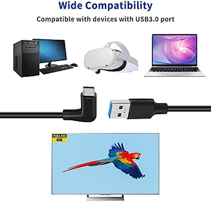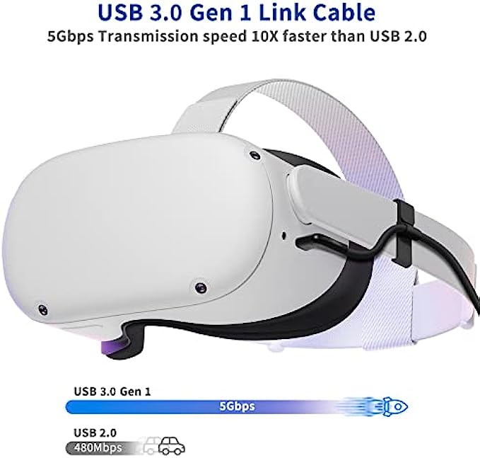 [High-speed Transfer] The link cable provides up to 5Gbps data transfer speed, as a VR headset link cable perfectly connects the Quest / Quest 2 to the gaming PC, avoiding data or frame loss during the game, providing the best gaming experience.