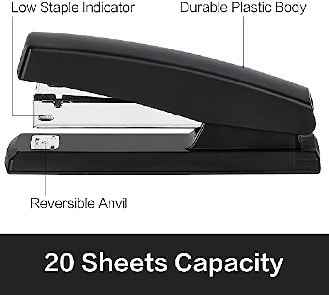 Deli Stapler, Desktop Stapler, Office Stapler, 20 Sheet Capacity, Includes 1000 Staples and Staple Remover, Black