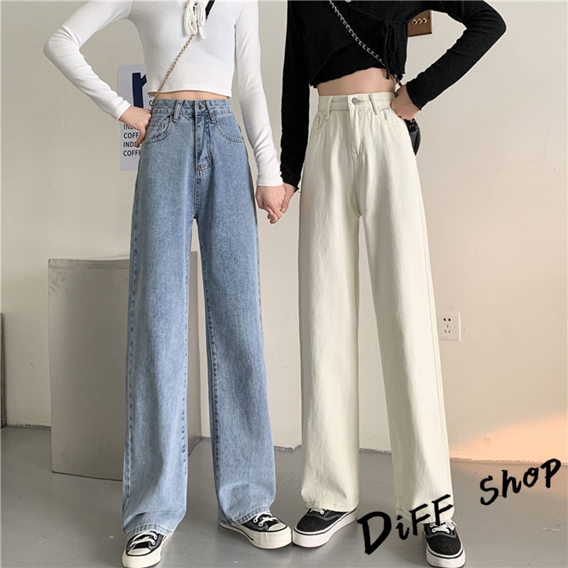 【DIFF】韓版寬鬆顯瘦高腰牛仔褲 寬褲 褲子 長褲 休閒褲 女裝【P102】