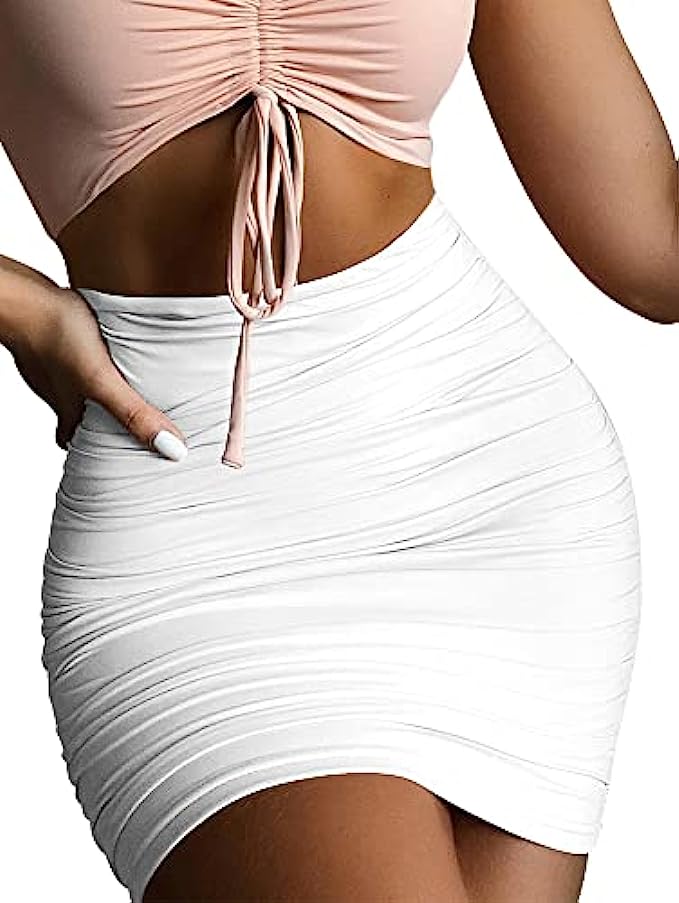 eoeoo Women's Ruched Bodycon Skirt High Waist Elastic Tight Sexy Club Mini Skirt