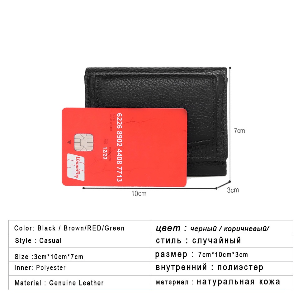 GENODERN RFID Blocking Women's Wallet Genuine Leather Lady Purses Short Japanese-Style Multiple Card Slots Coin Purse Tri-Fold Wallet