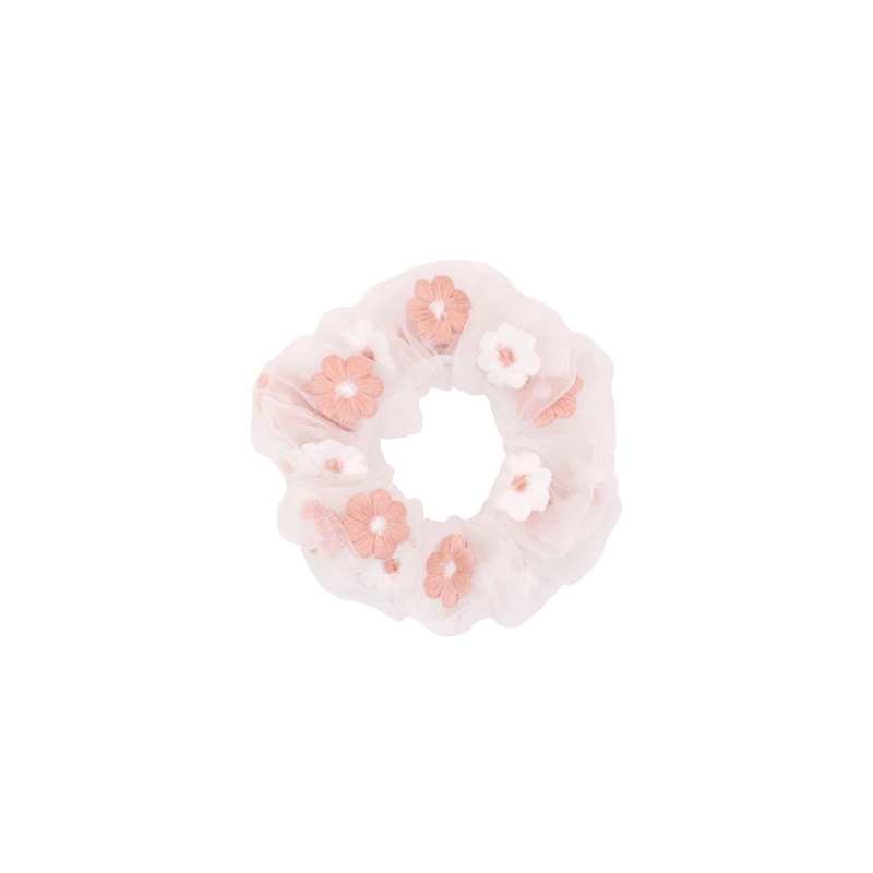 Girls Summer White Floral Scrunchies Hair Accessories Hair Rope White/Pink