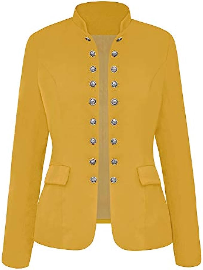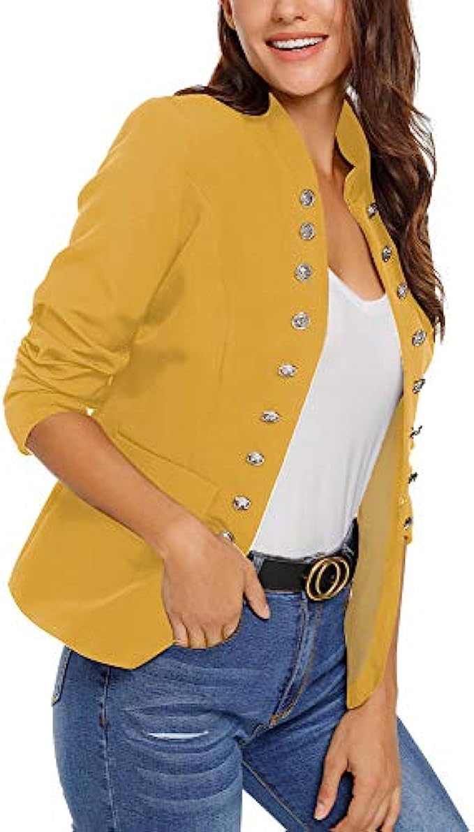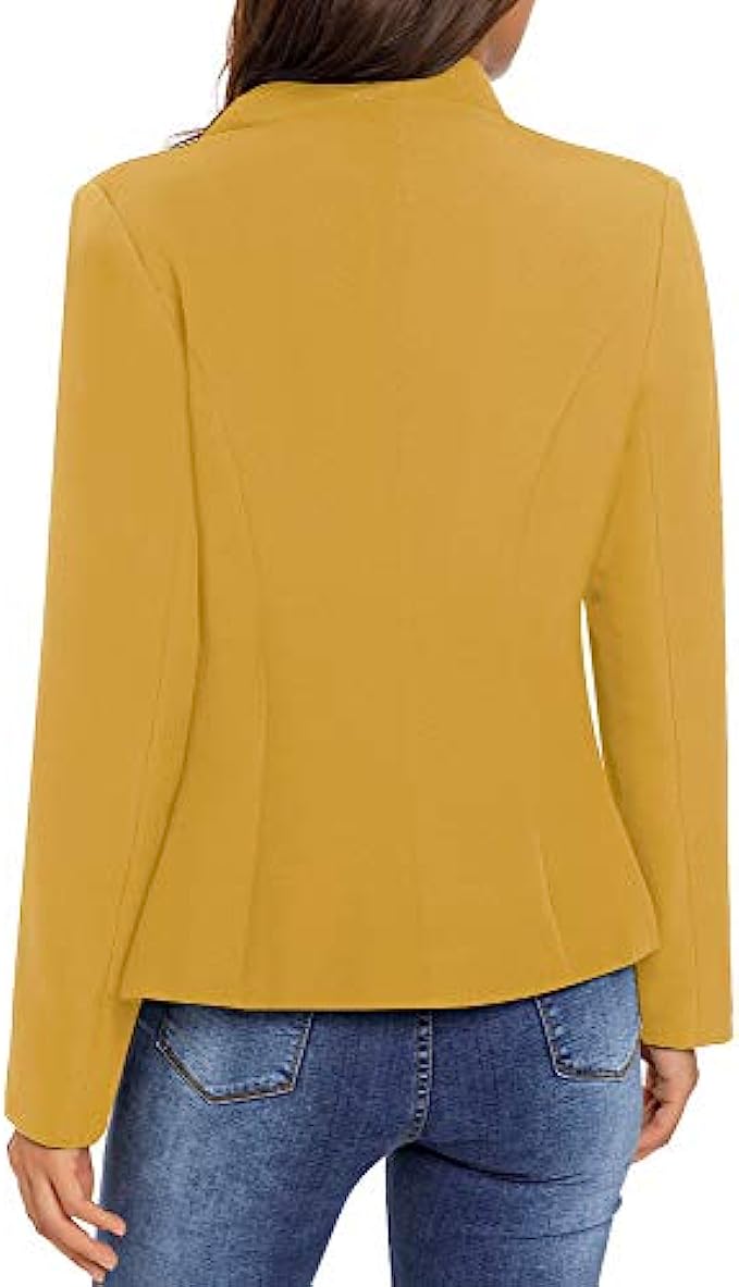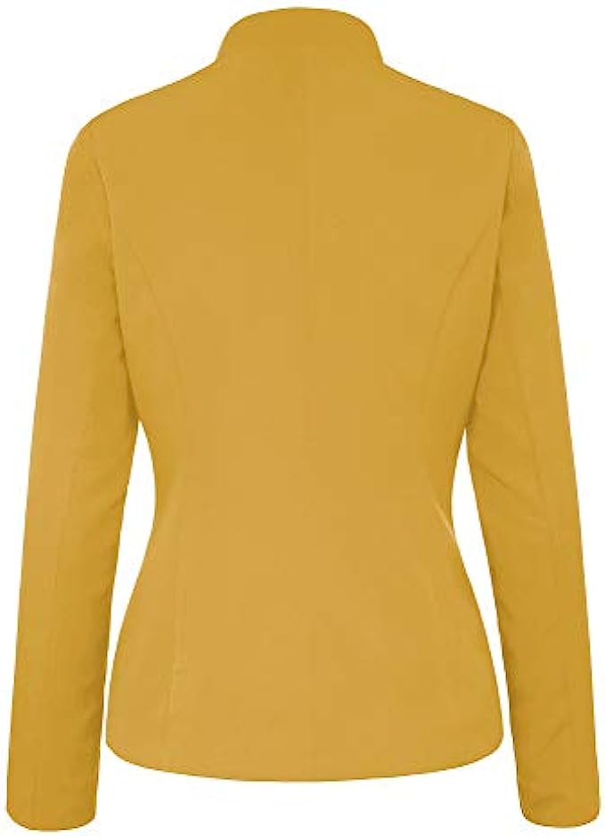 • Women casual open front blazer features long sleeves and stand neck. Fully lined, unstretchable, shoulder padded.