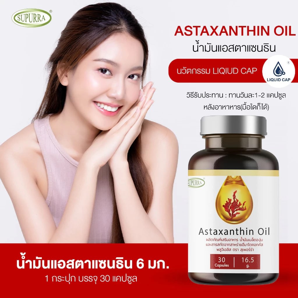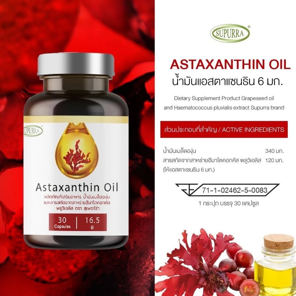 [1กระปุก]Supurra Astaxanthin oil สารสกัดจากสาหร่ายฮีมาโตคอกคัสพลูวิเอลิสเเละน้ำมันเมล็ดองุ่น ตราสุเพอร์ร่า [C4]