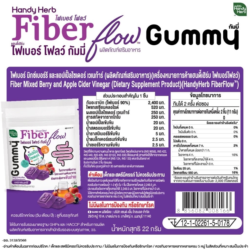 HandyHerb Fiber Flow Gummy ไฟเบอร์ มิกซ์เบอร์รี เเละแอปเปิ้ลไซเดอร์ เวเนก้าร์ รสมิกซ์เบอร์รี 3 กล่อง (18 ซอง)