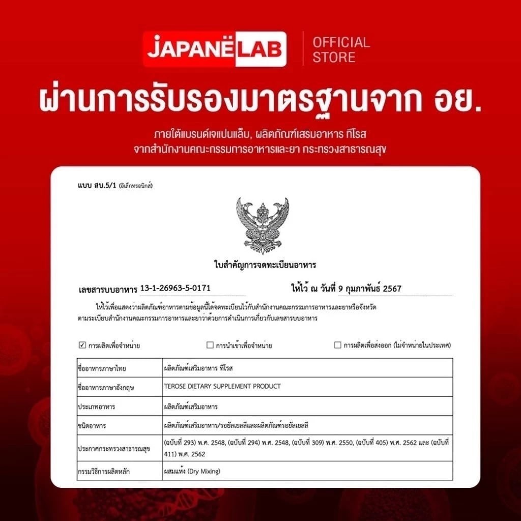 JAPANELAB TEROSE เทโลส95 Telos95 1กล่อง7ซอง