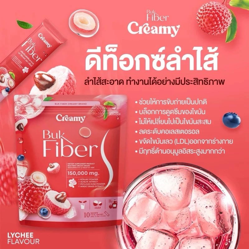 (1ห่อ10ซอง)ครีมมี่ บุก ไฟเบอร์Creamy Fiber ล้างไขมัน ขับถ่ายดี ปรับลำไส้ ดีท็อก