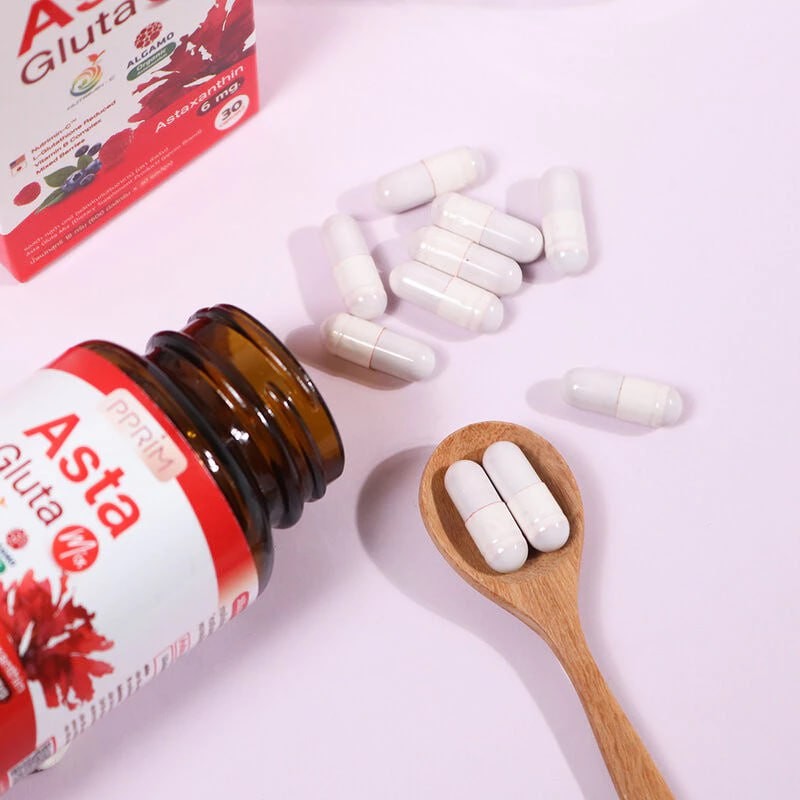PPRIM Asta Gluta Mix 30 Capsules ผลิตภัณฑ์เสริมอาหารแอสต้าแซนธิน 6มก. ต่อแคปซูล