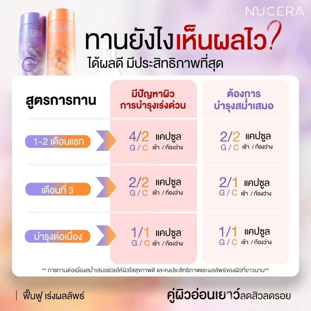 NUCERA G Plus & C² | "นูเซร่า" เซตคู่วิตามินผิวฉ่ำใส สูตรลดรอยแดง&บูสการดูดซึม ประกอบด้วย G1 + C1