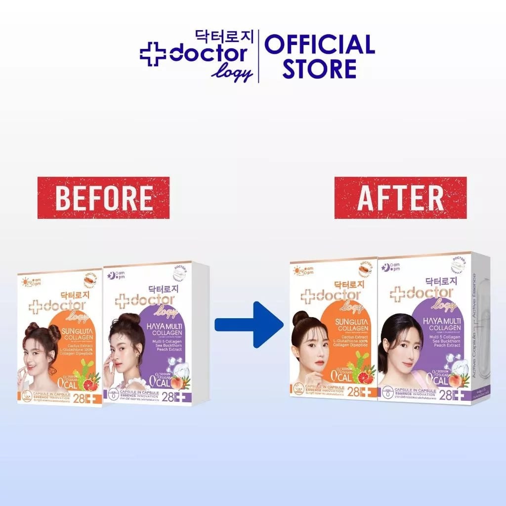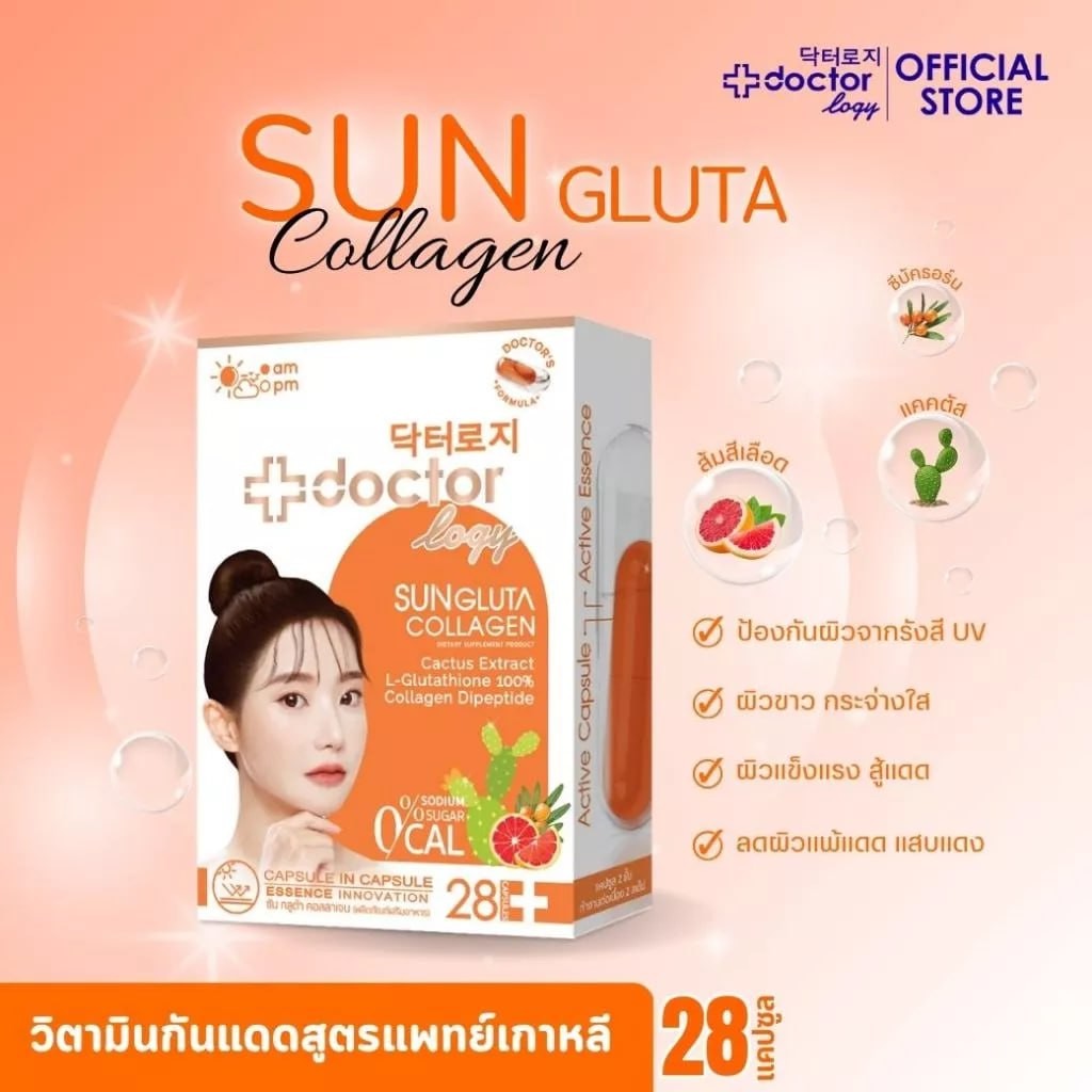 Doctorlogy ซัน กลูต้า คอลลาเจน (28 แคปซูล) ดอกเตอร์ โลจิ วิตามินกันแดด-วิตามินผิวขาว สูตรแพทย์ แคปซูล 2 ชั้นทำงานนานต่อ