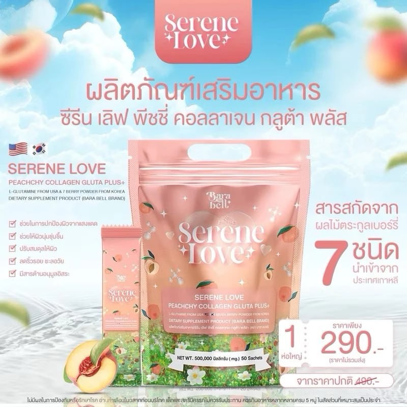 Serene Love Grass Skin collagen น้ำชง ซีรีนเลิฟ ซีรีน คอลลาเจน กลูต้า ลดสิว ผิวใส แข็งแรง เม็ดเคี้ยว ซีรีน เลิฟ
